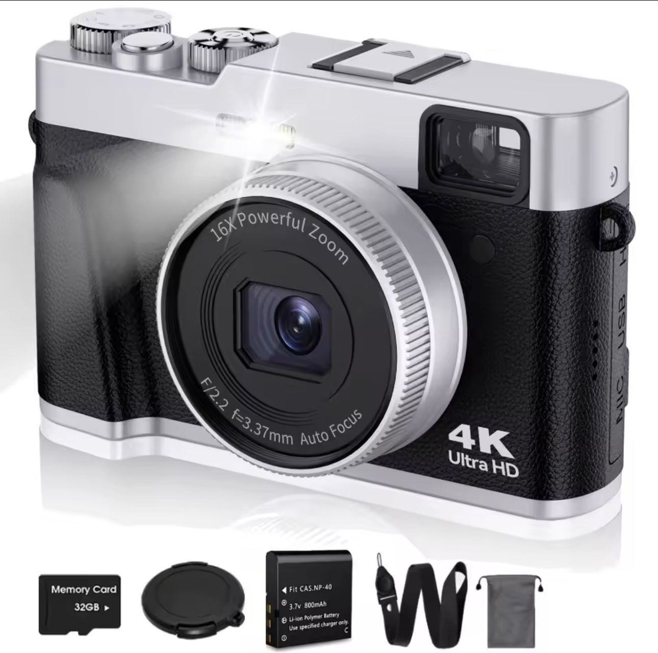 كاميرا رقمية بدقة 4K مع تركيز تلقائي وكاميرا فيديو بدقة 48 ميجابكسل