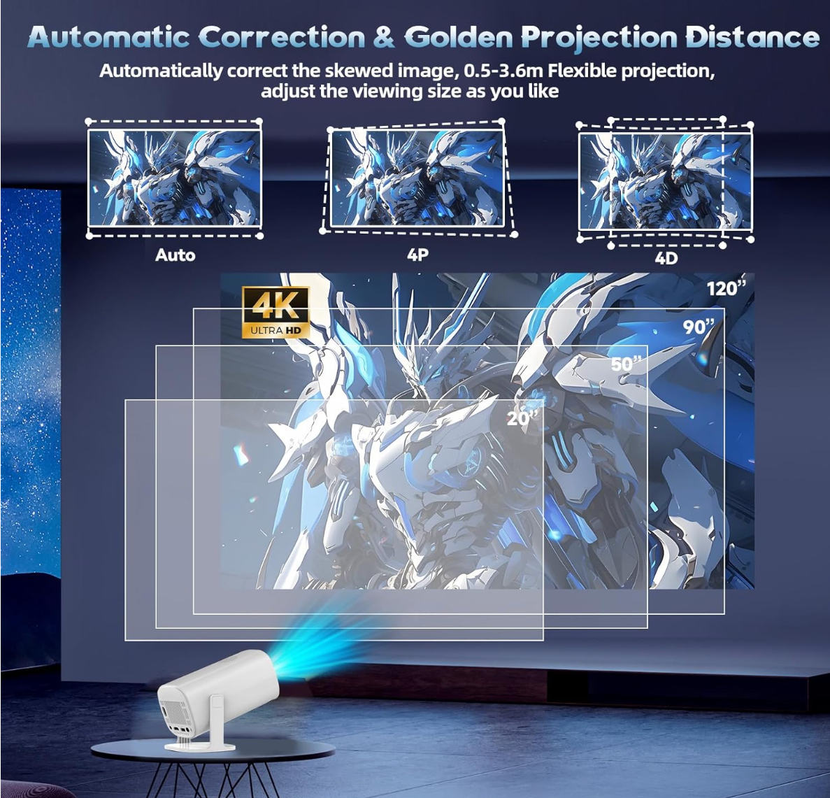 - تجربة مسرح منزلي بدقة 4K/1280P: ارتقِ بترفيهك المنزلي إلى مستوى جديد مع دعم فيديو 4K ودقة أصلية 1280x720. بفضل وظيفة تكبير الصورة بنسبة 50% ونسبة التباين الديناميكي العالية، يُضفي هذا الجهاز وألعاب الفيديو صورًا مذهلة، بينما يضمن تشغيله فائق الهدوء (25 ديسيبل) تجربة مشاهدة متواصلة.
