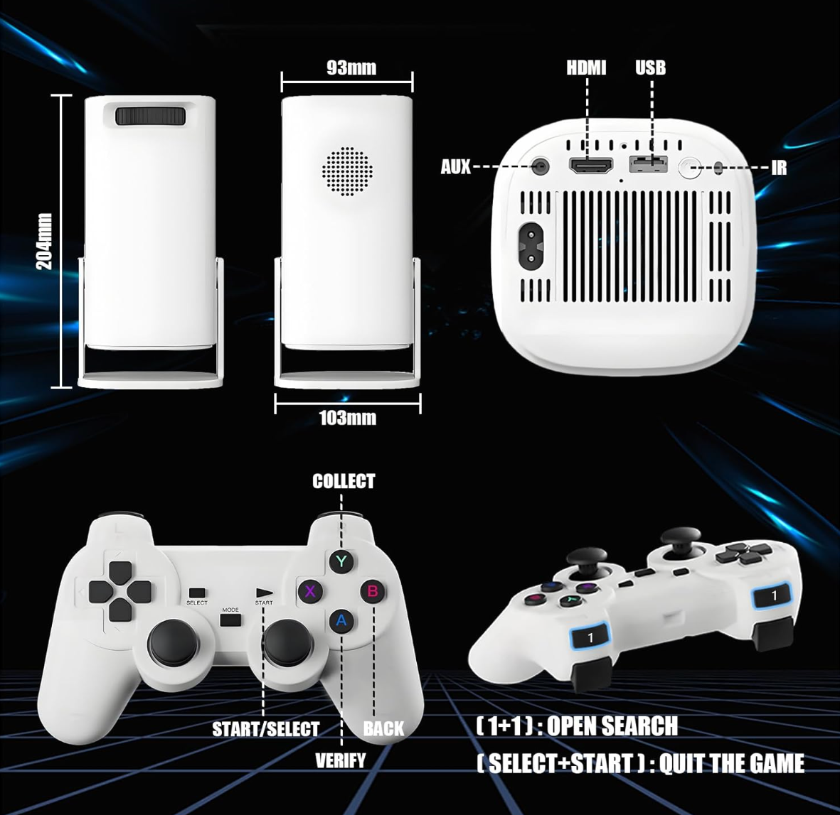 - تصميم محمول: تم تصميم وحدة تحكم ألعاب العرض لتكون متعددة الاستخدامات، والشكل خفيف الوزن والمحمول يجعل من السهل اصطحابها إلى أي مكان، كما يسمح لك الحامل القابل للتعديل بزاوية 180 درجة بإيجاد الزاوية المثالية لأي موقف عرض - سواء كان ذلك لأمسيات الأفلام المنزلية أو التخييم في الهواء الطلق أو العروض التقديمية المكتبية أو الألعاب أو التجمعات الاجتماعية.
